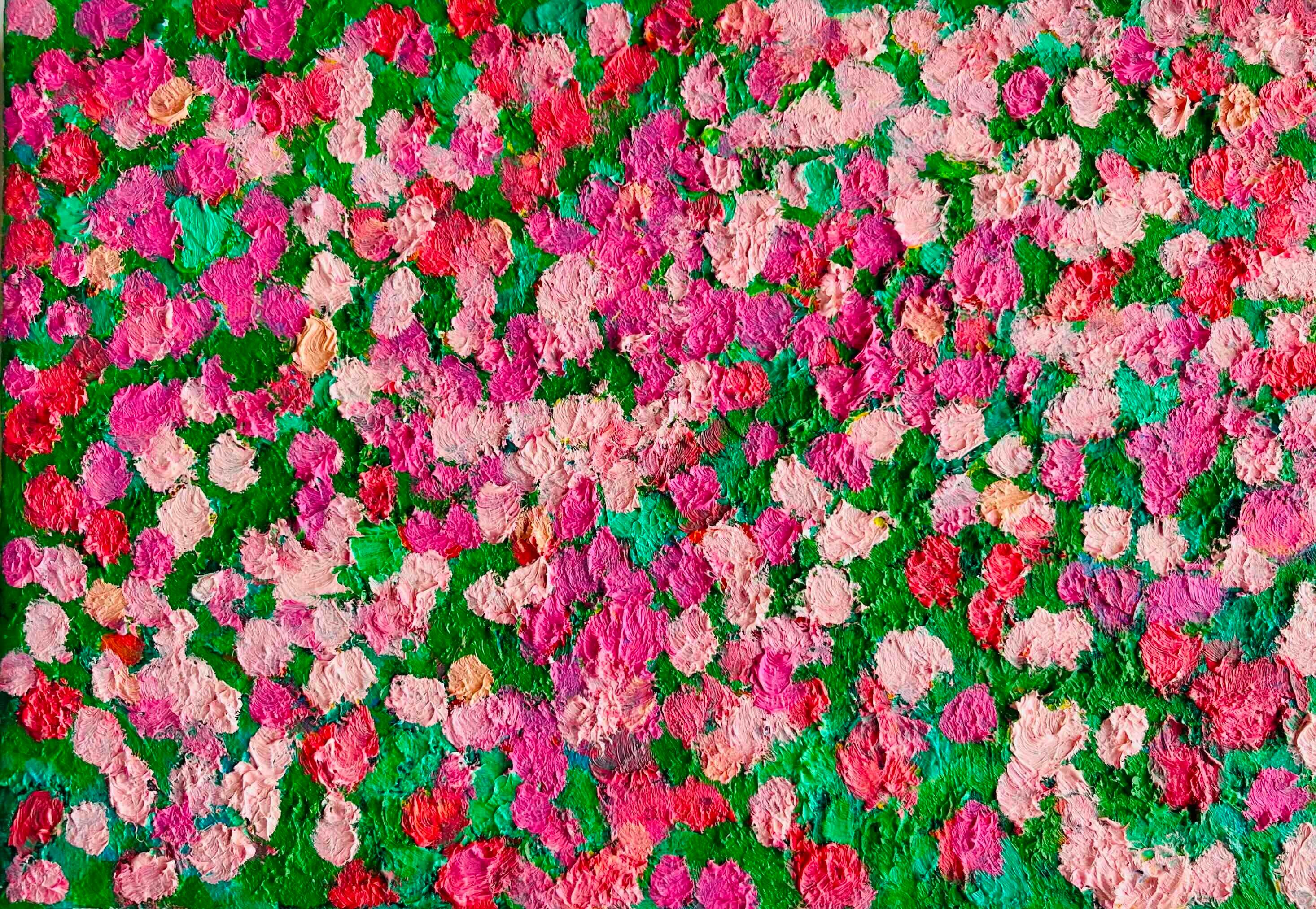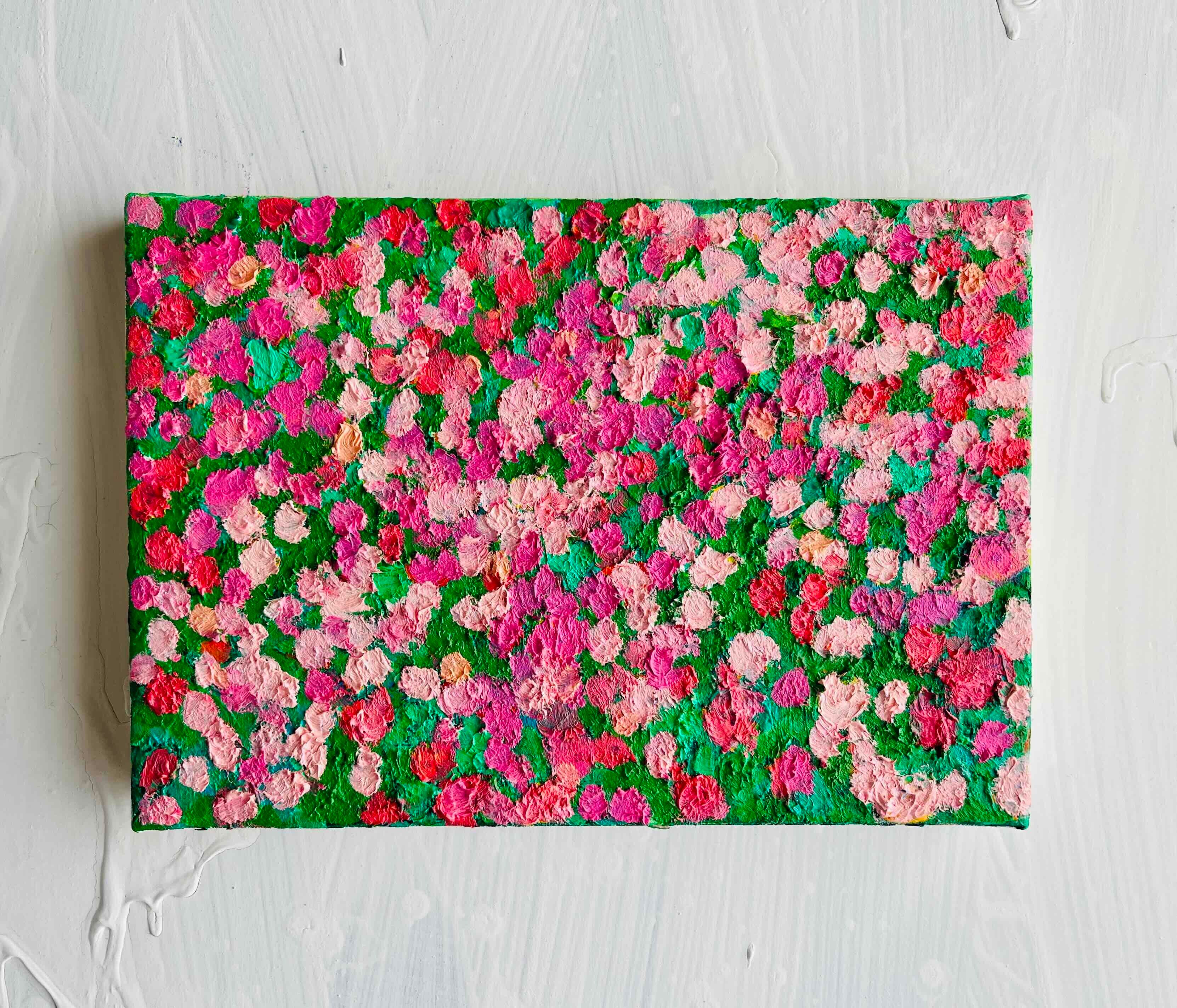 16×23㎝「ピンクの花畑」油彩・原画・サムホールサイズ