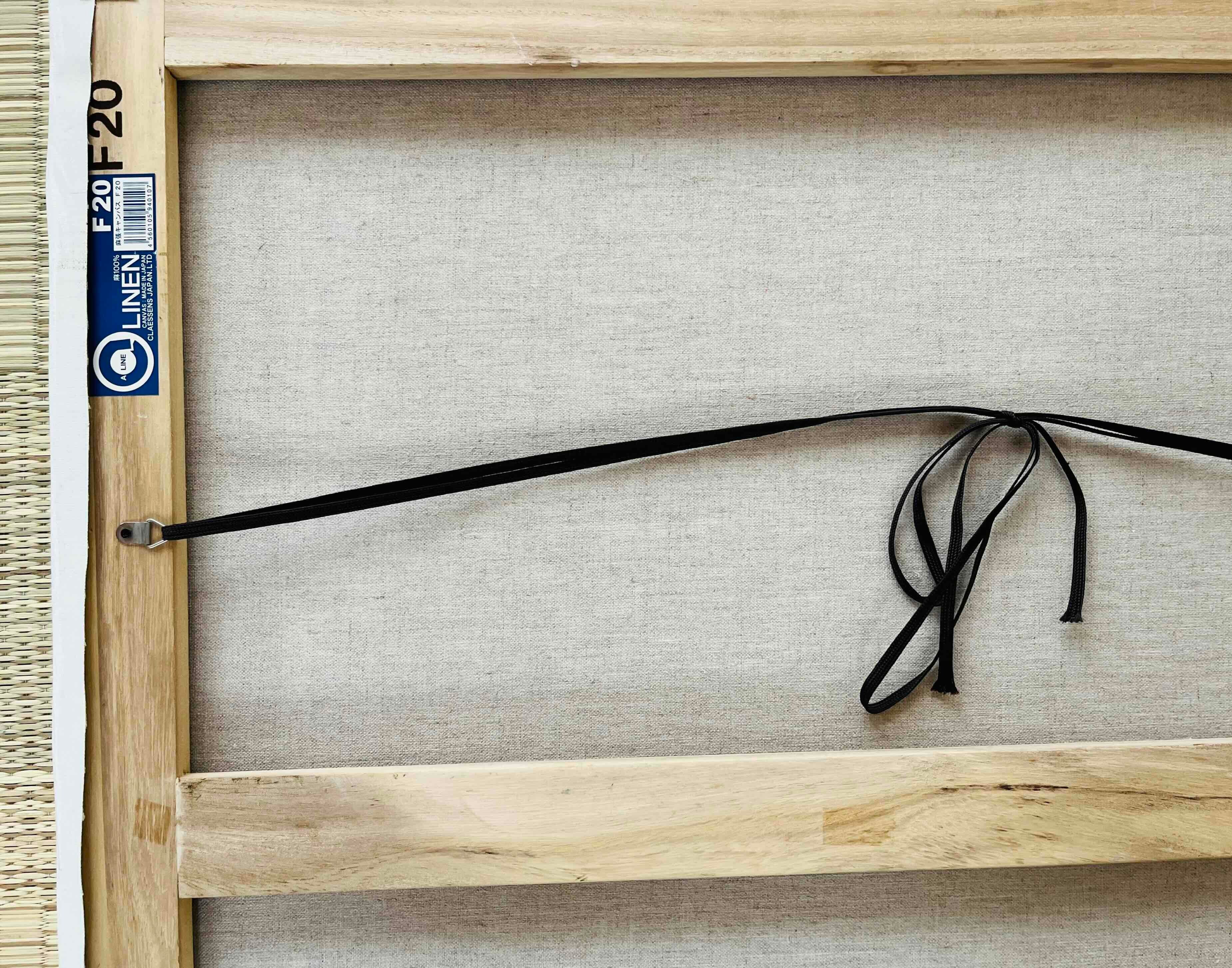 絵画の裏面に紐が取りつけてありますのでそのままでも飾れます。