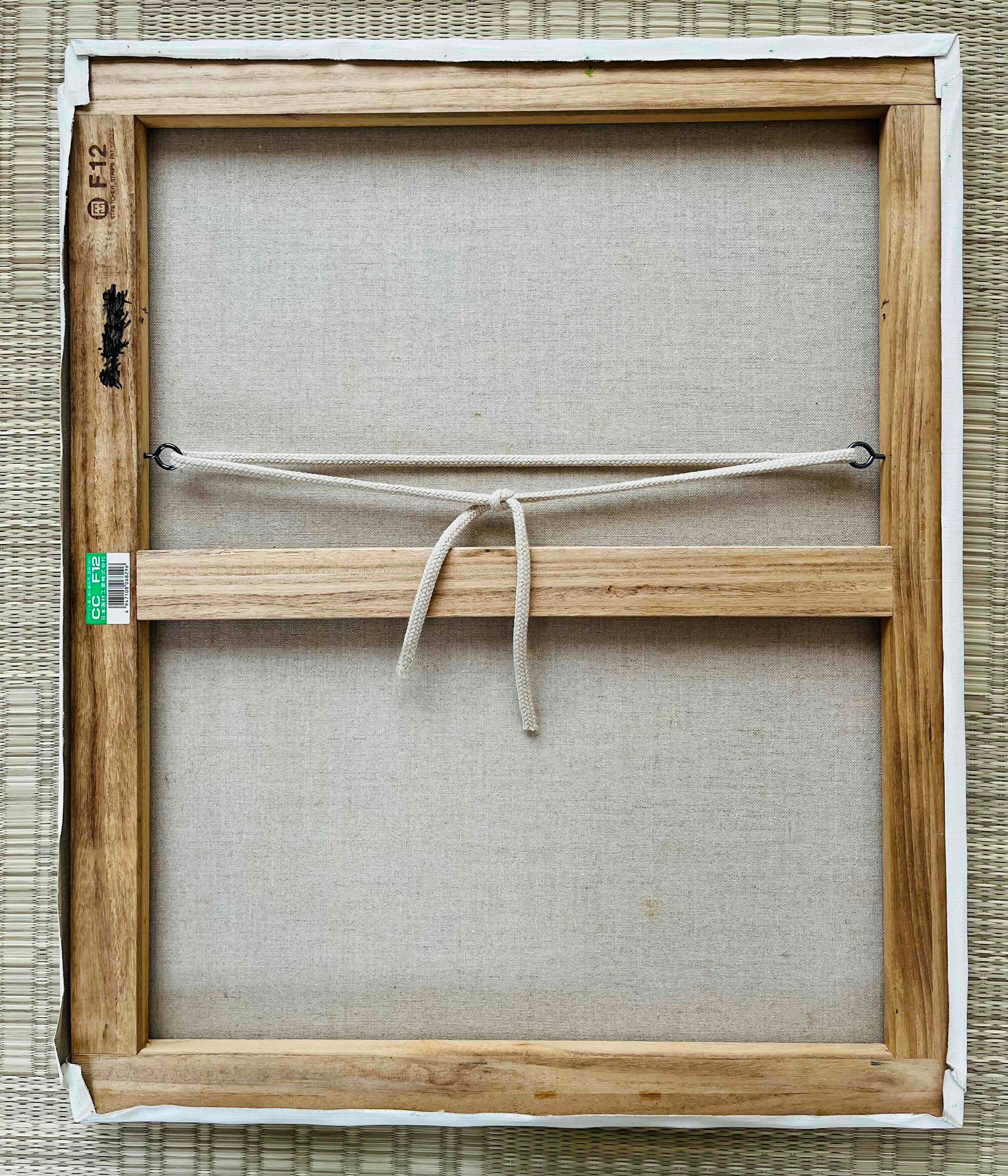 絵画の裏面に紐が取りつけてありますのでそのままでも飾れます。