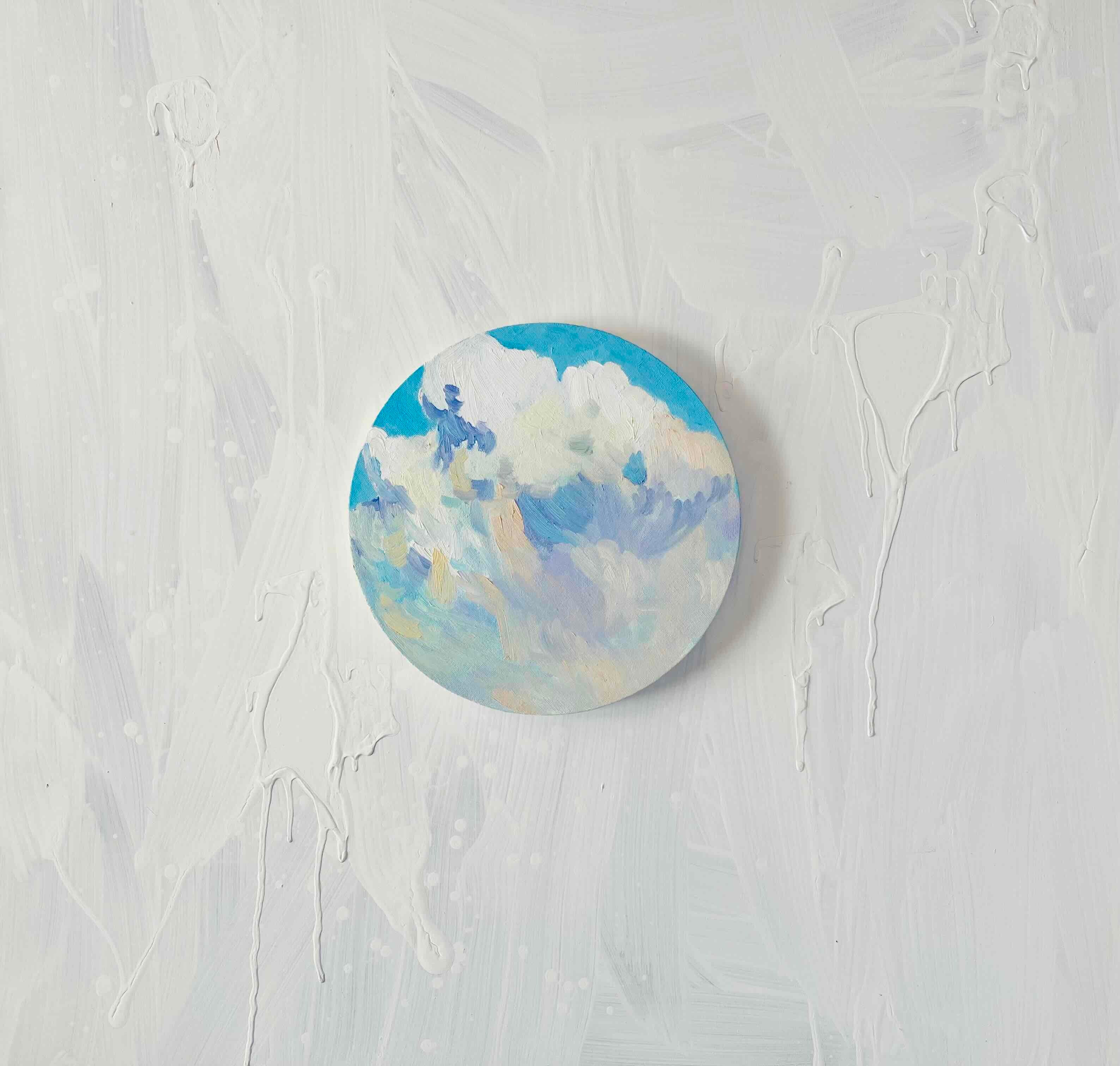 円形のキャンバスに油彩画で描きました。