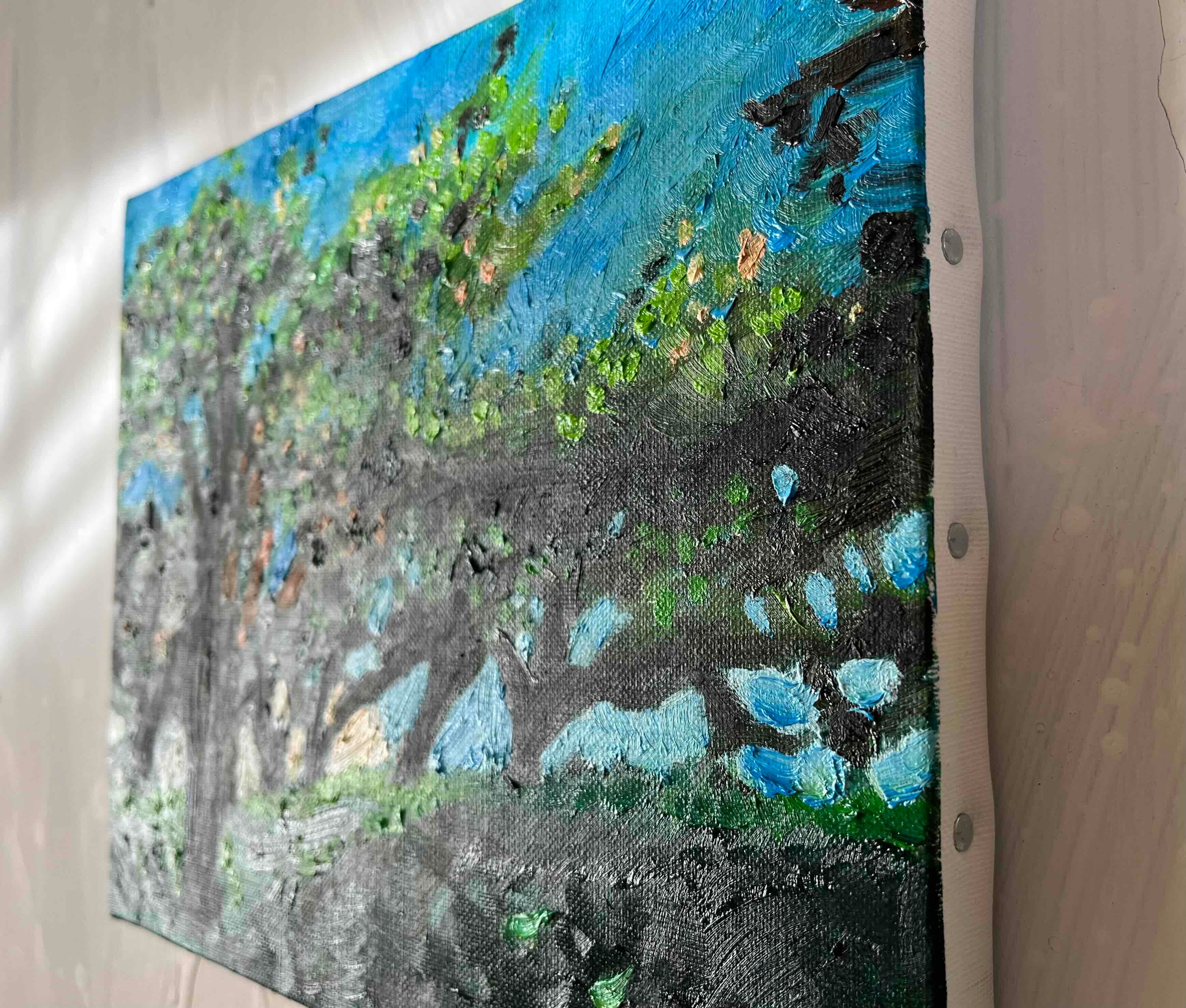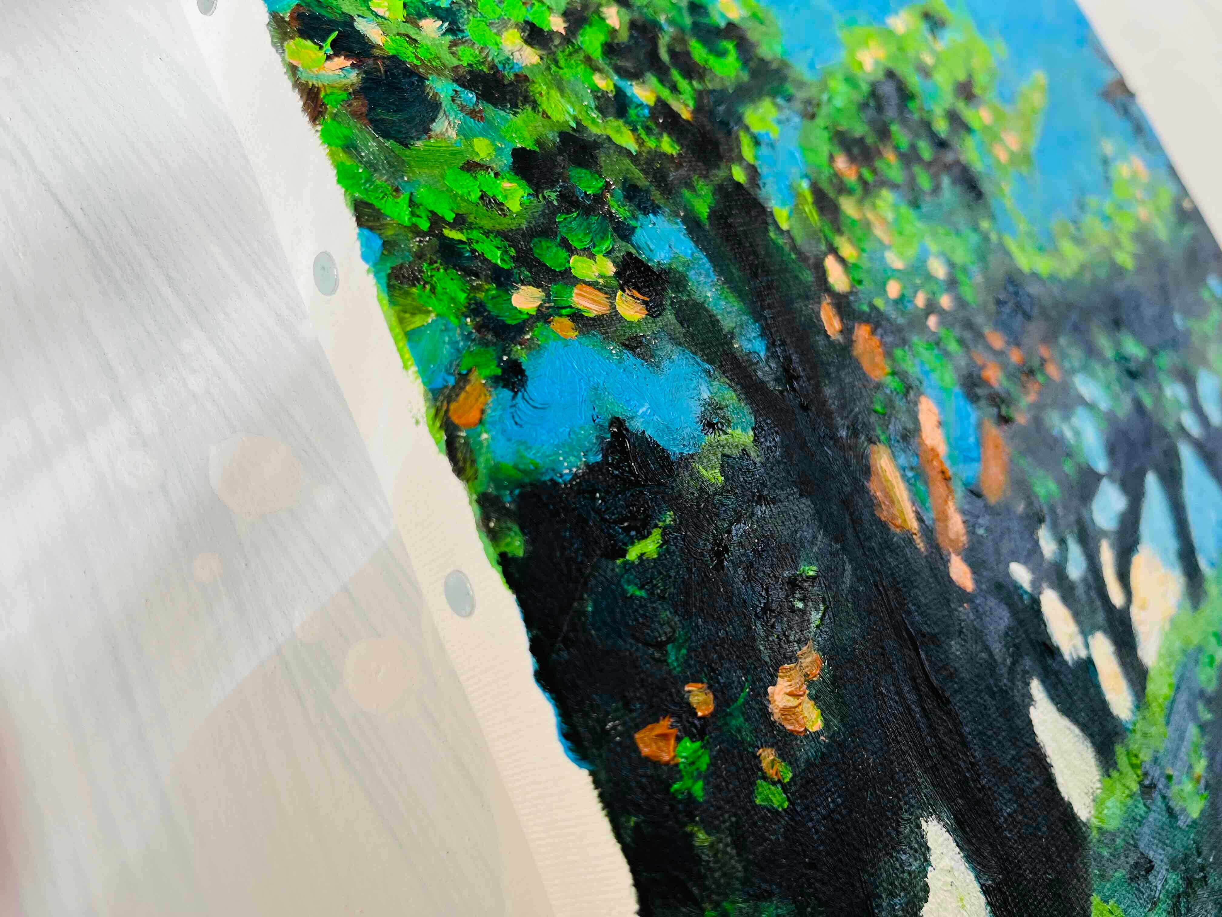 There is a string attached to the back of the painting, so you can hang it on the wall as soon as it arrives.
