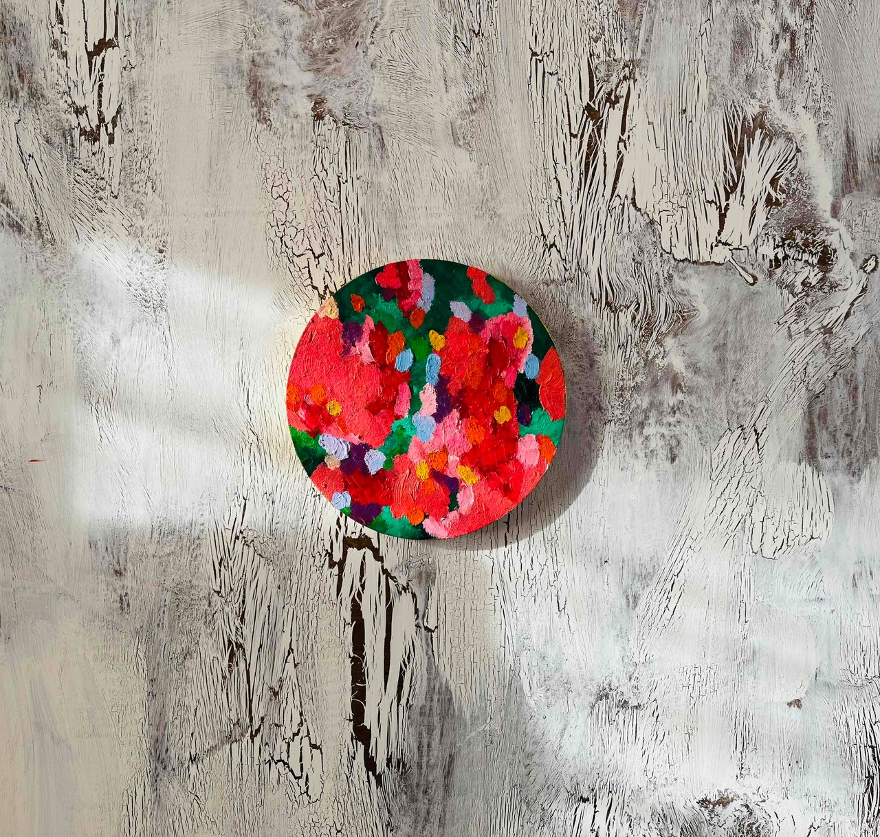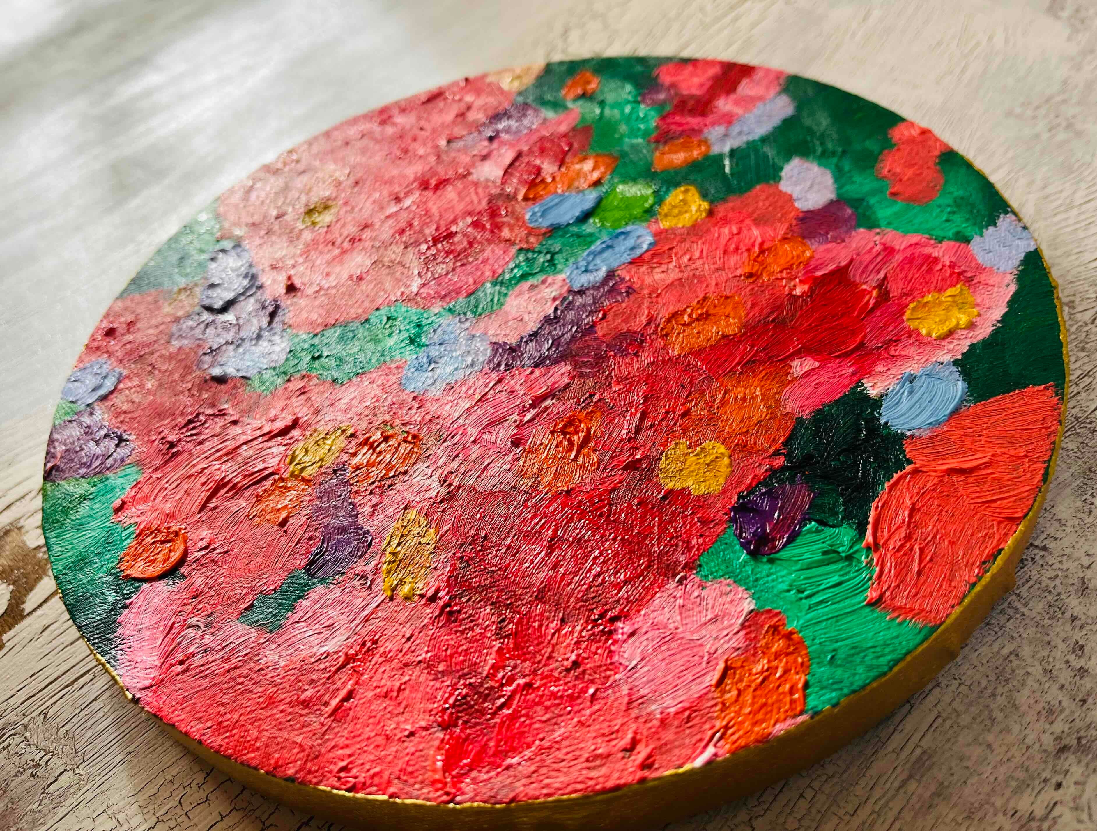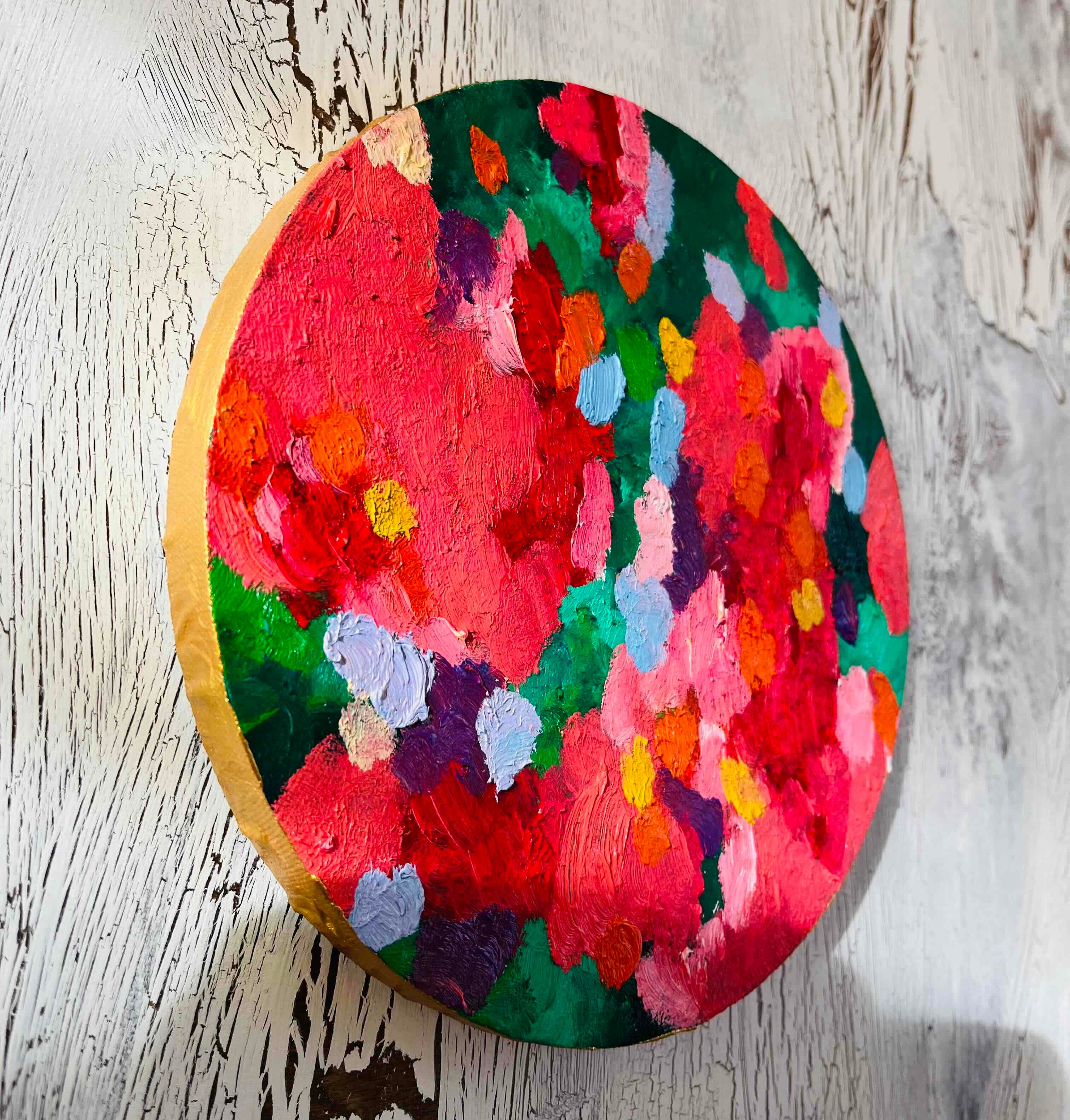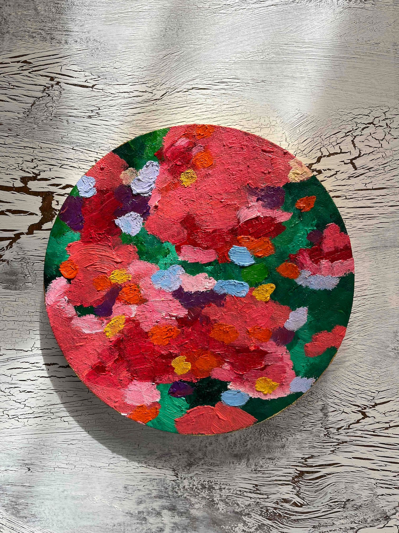 高品質な油彩絵画『Wild Flowers 2025』は、丸形キャンバス直径20cmのアートパネルです。
