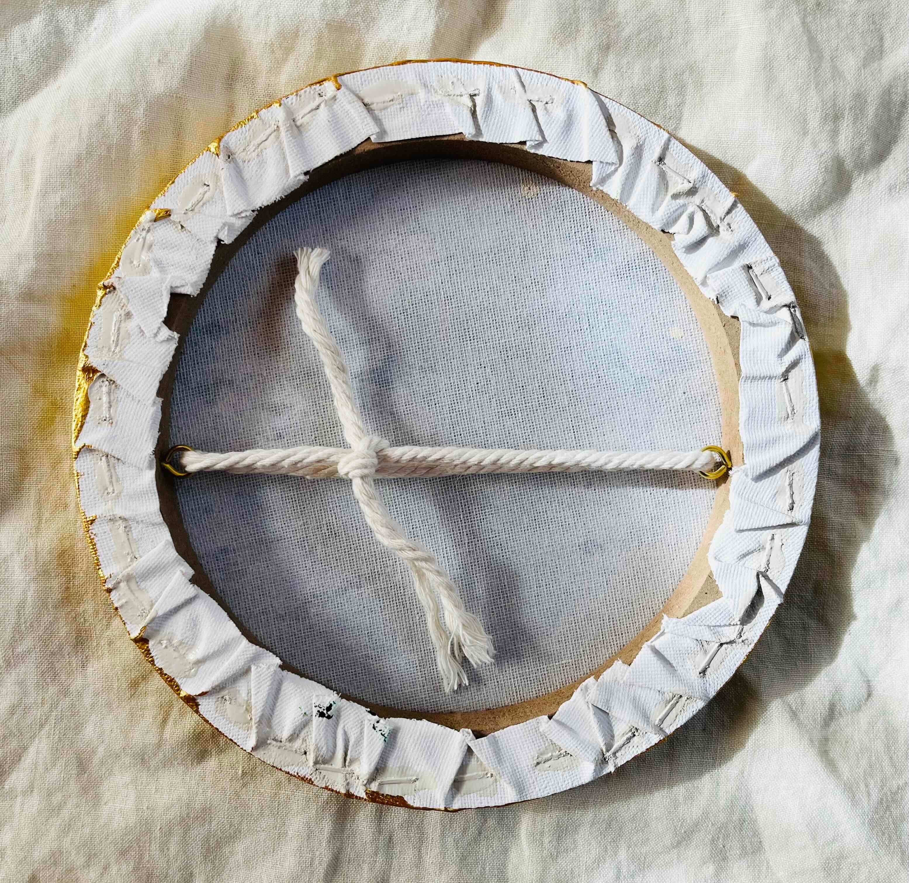 技法・素材 : 油彩・木材にコットン100%の布張りキャンバス 裏に取り付けてある紐もコットン100% 真鍮製金具