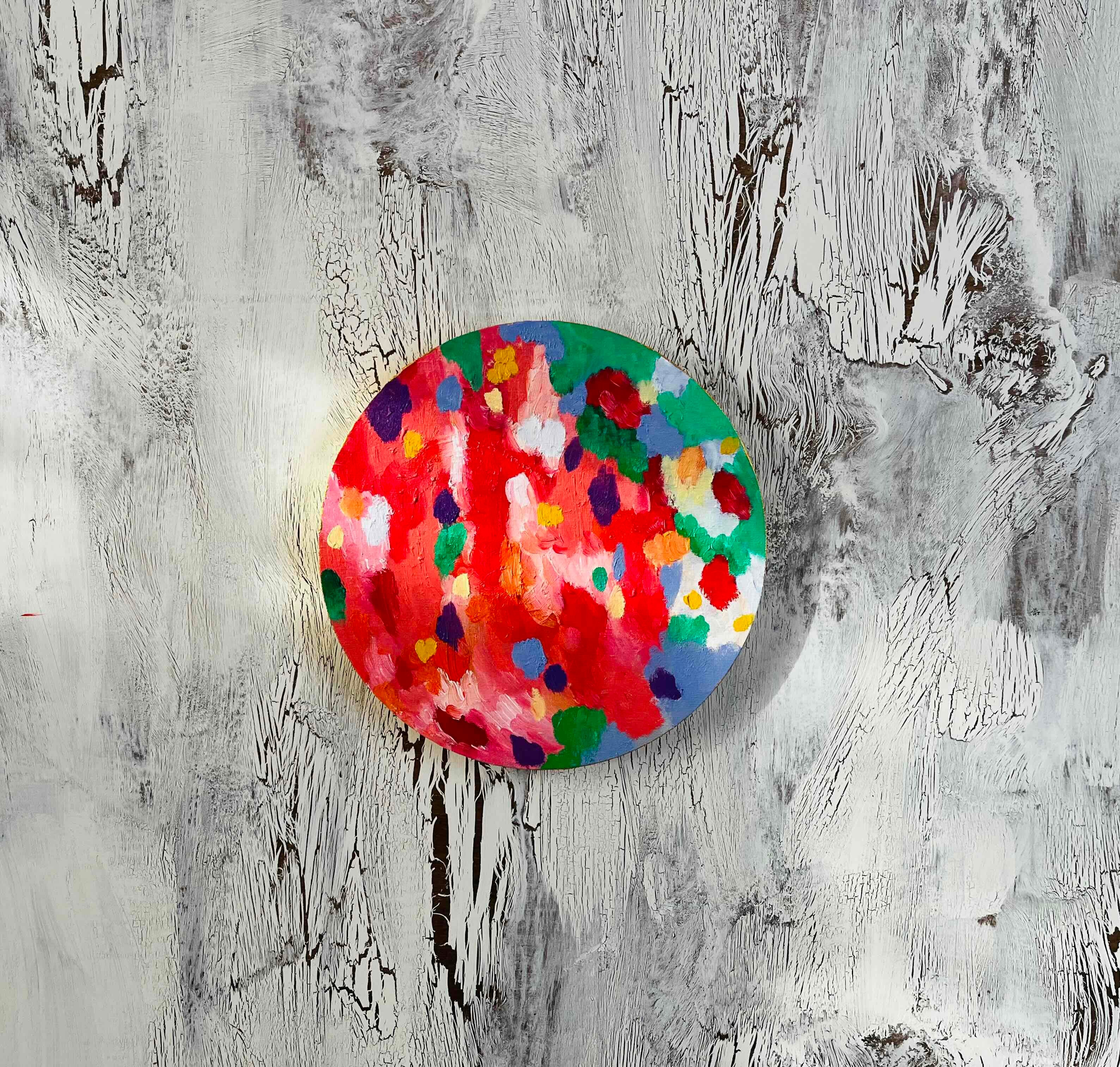 高品質な油彩絵画『Wild Flowers 2025』は、丸形キャンバス直径20cmのアートパネルです。