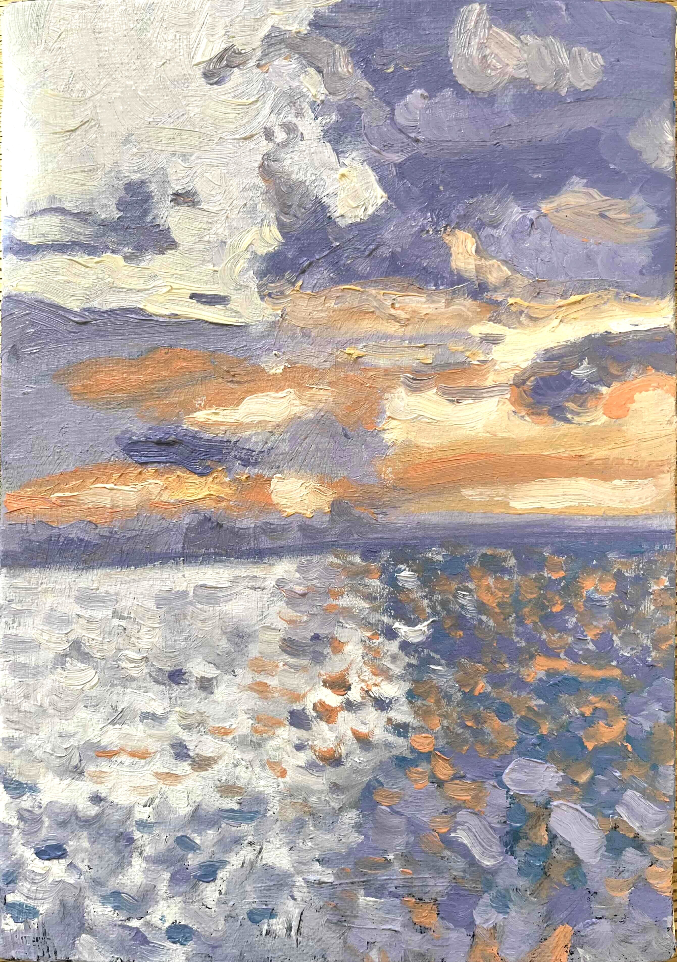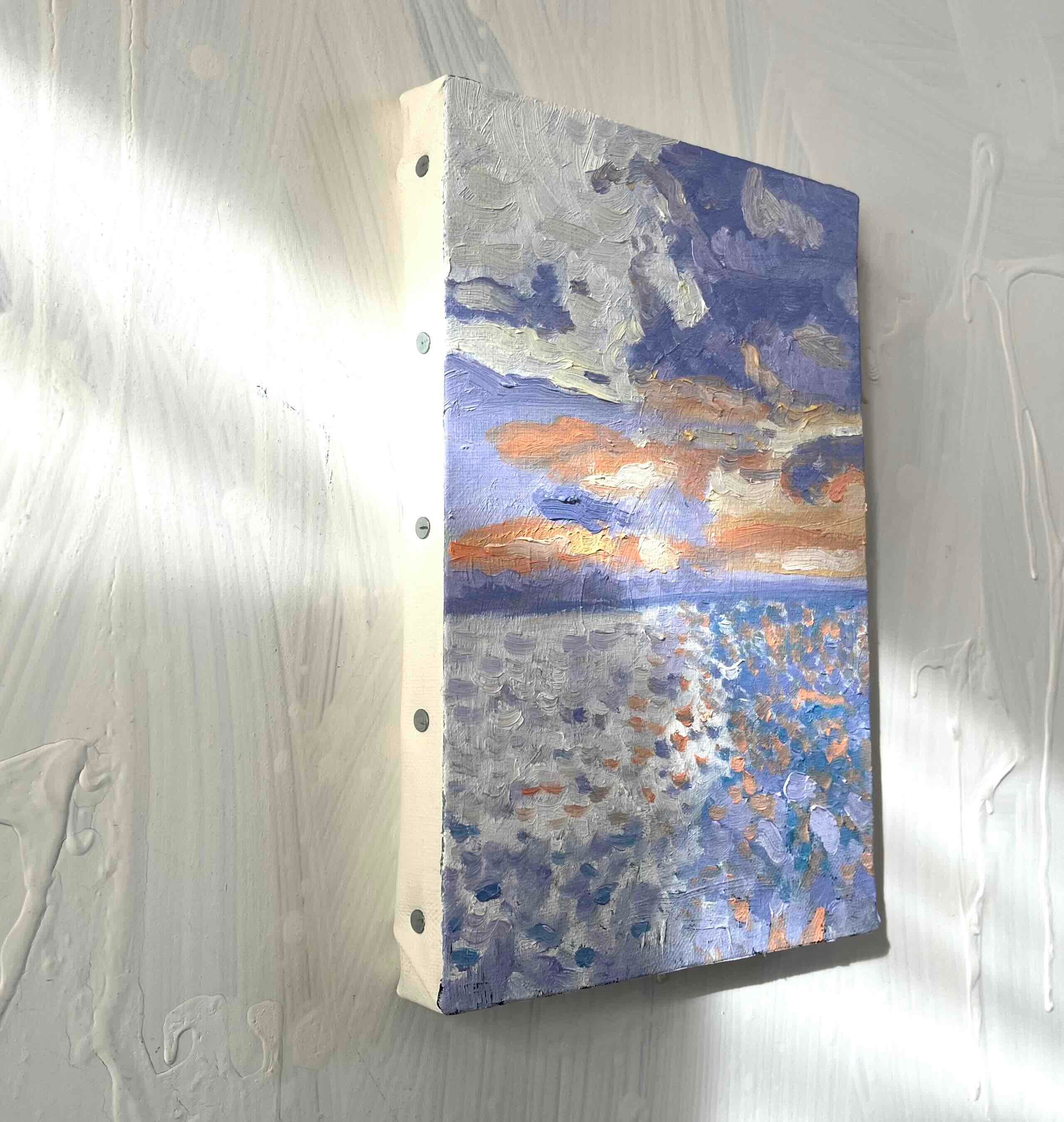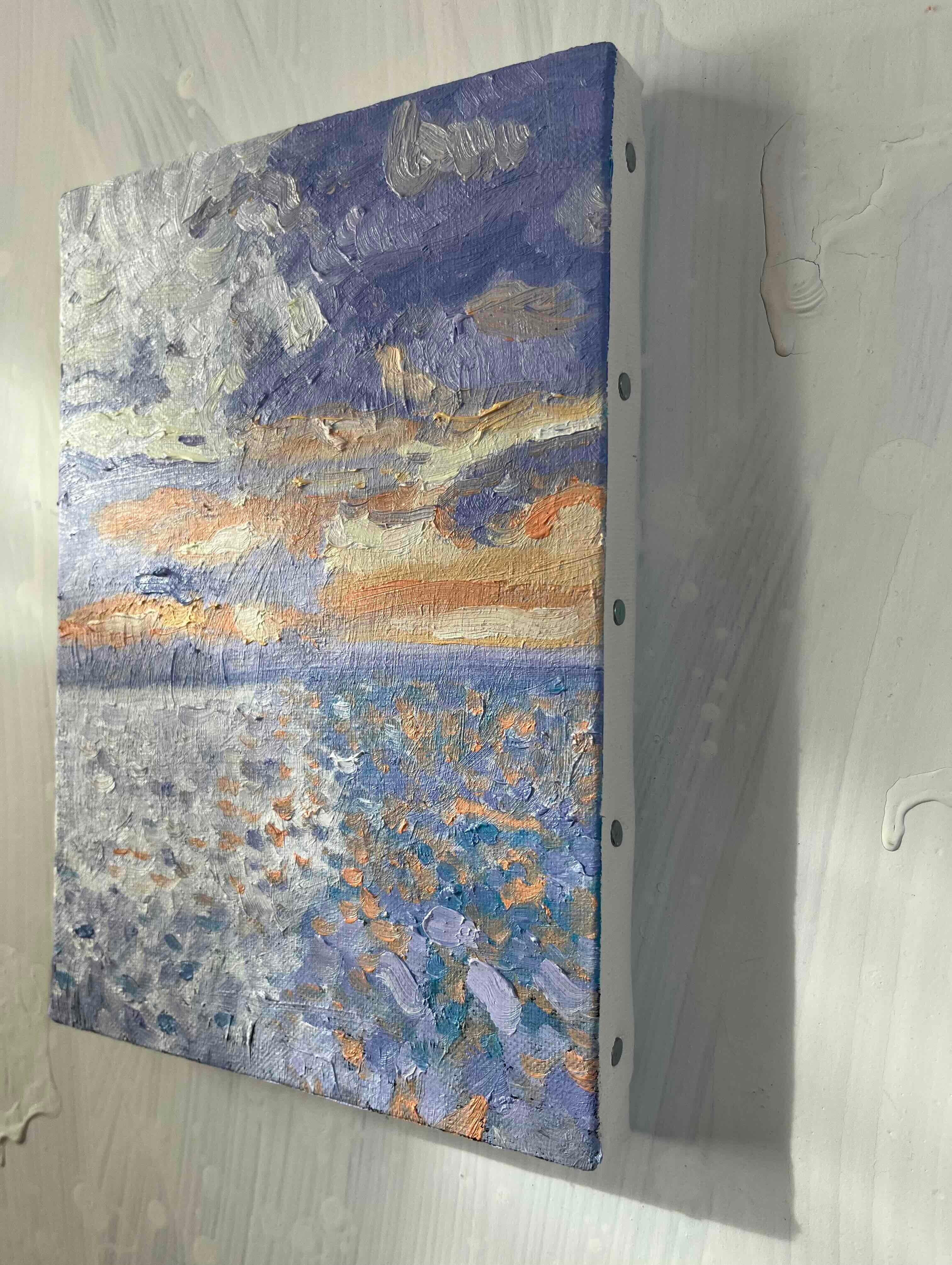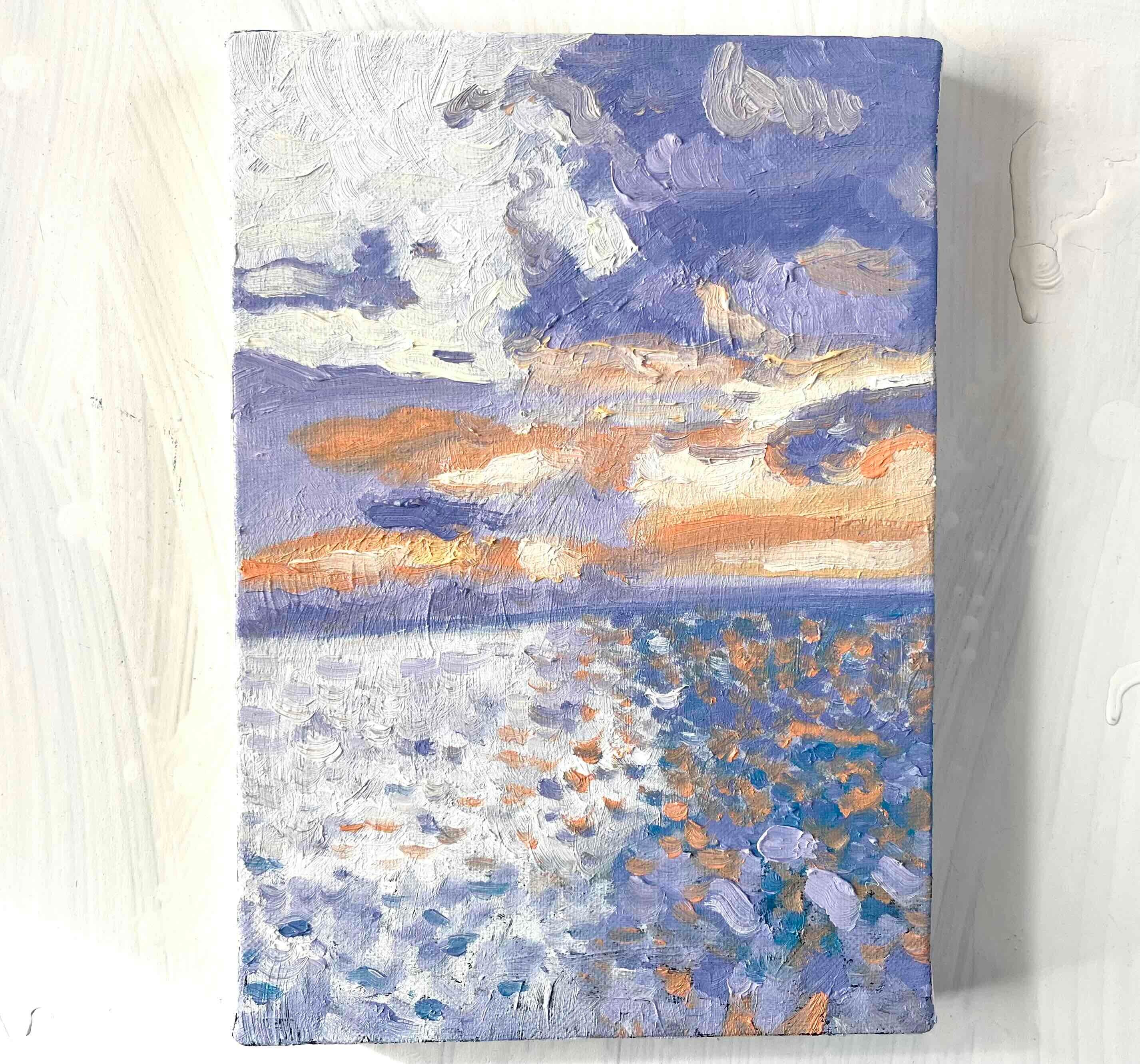 原画 油彩画「バイオレット色の海」絵画・アート・キャンバス・サムホールサイズ(16×23㎝)