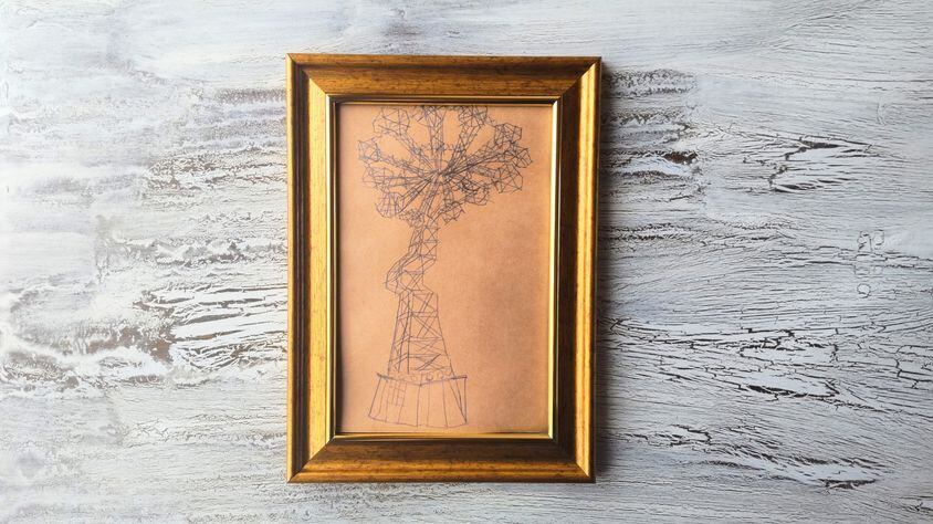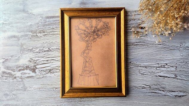 12×16㎝「歪む遊具」鉛筆・額装・壁掛け・葉書サイズ・原画