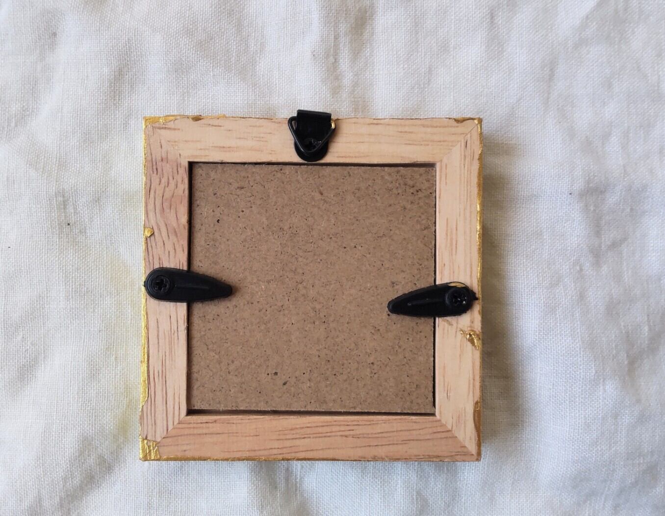背面に3角吊り金具が取り付けてありますのでそのまま飾れます。