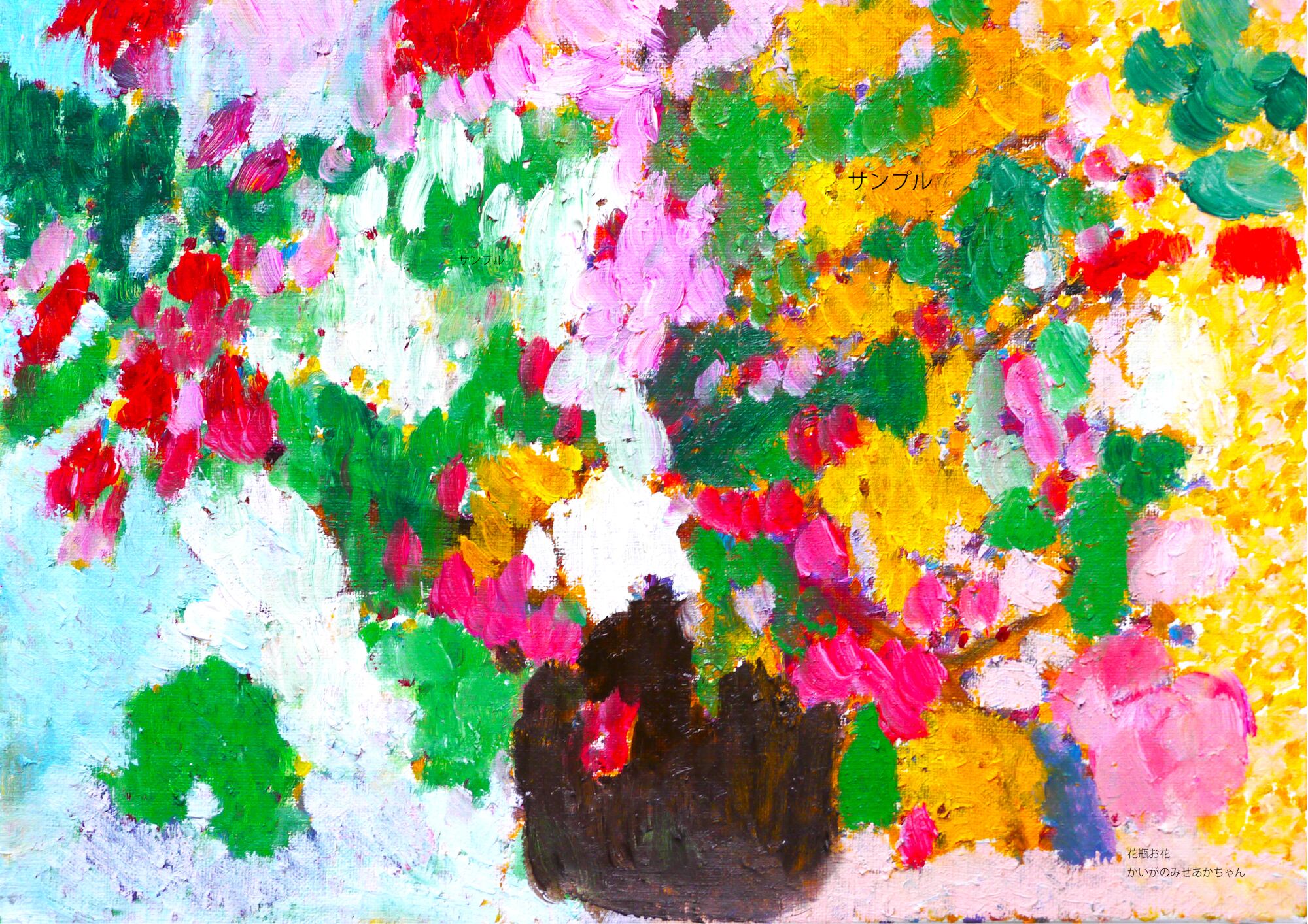 かいがのみせあかちゃん の絵画「 花瓶の花 」をポスターとメッセージカードに致しました。