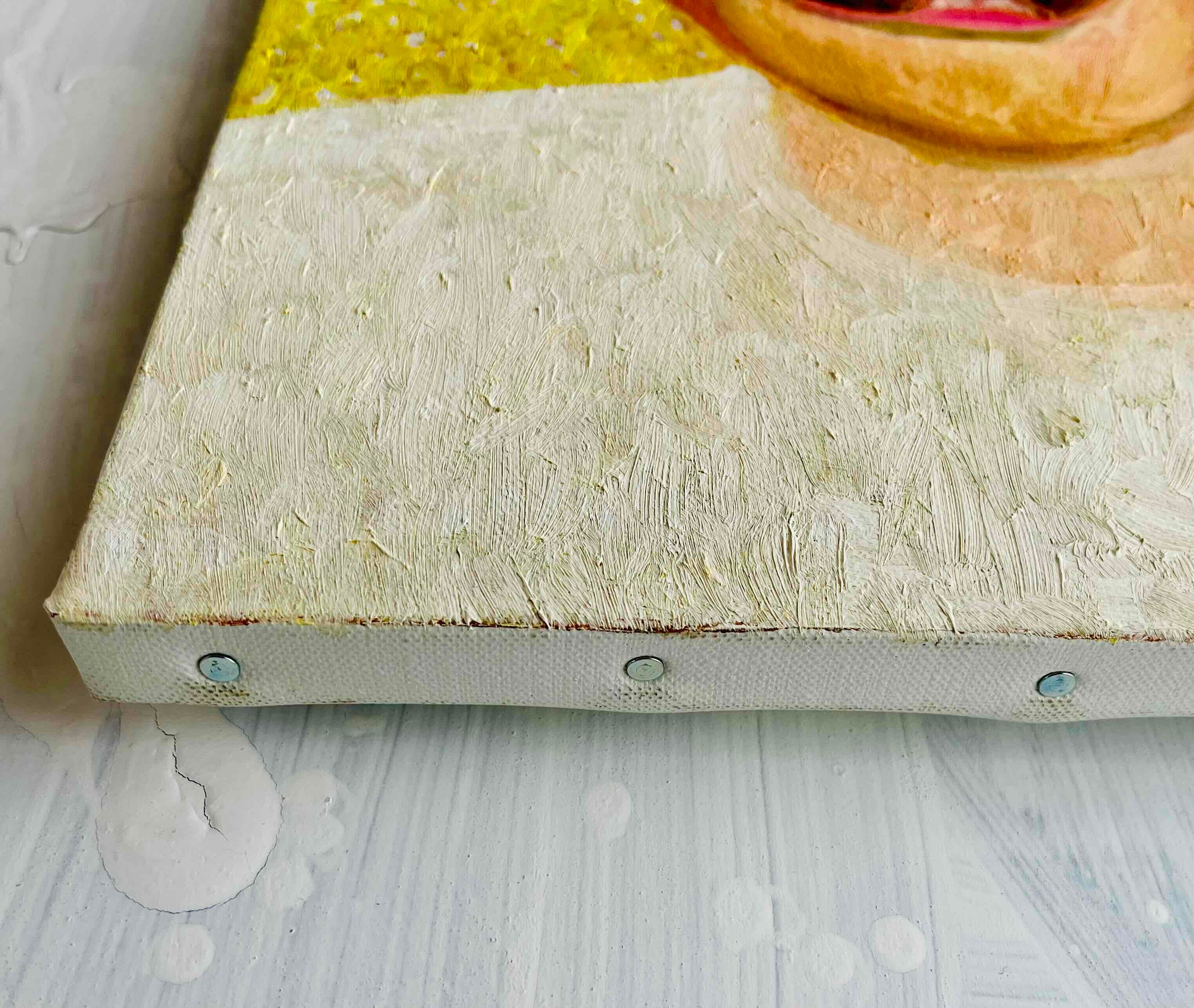 There is a string attached to the back of the painting, so you can hang it on the wall as soon as it arrives.