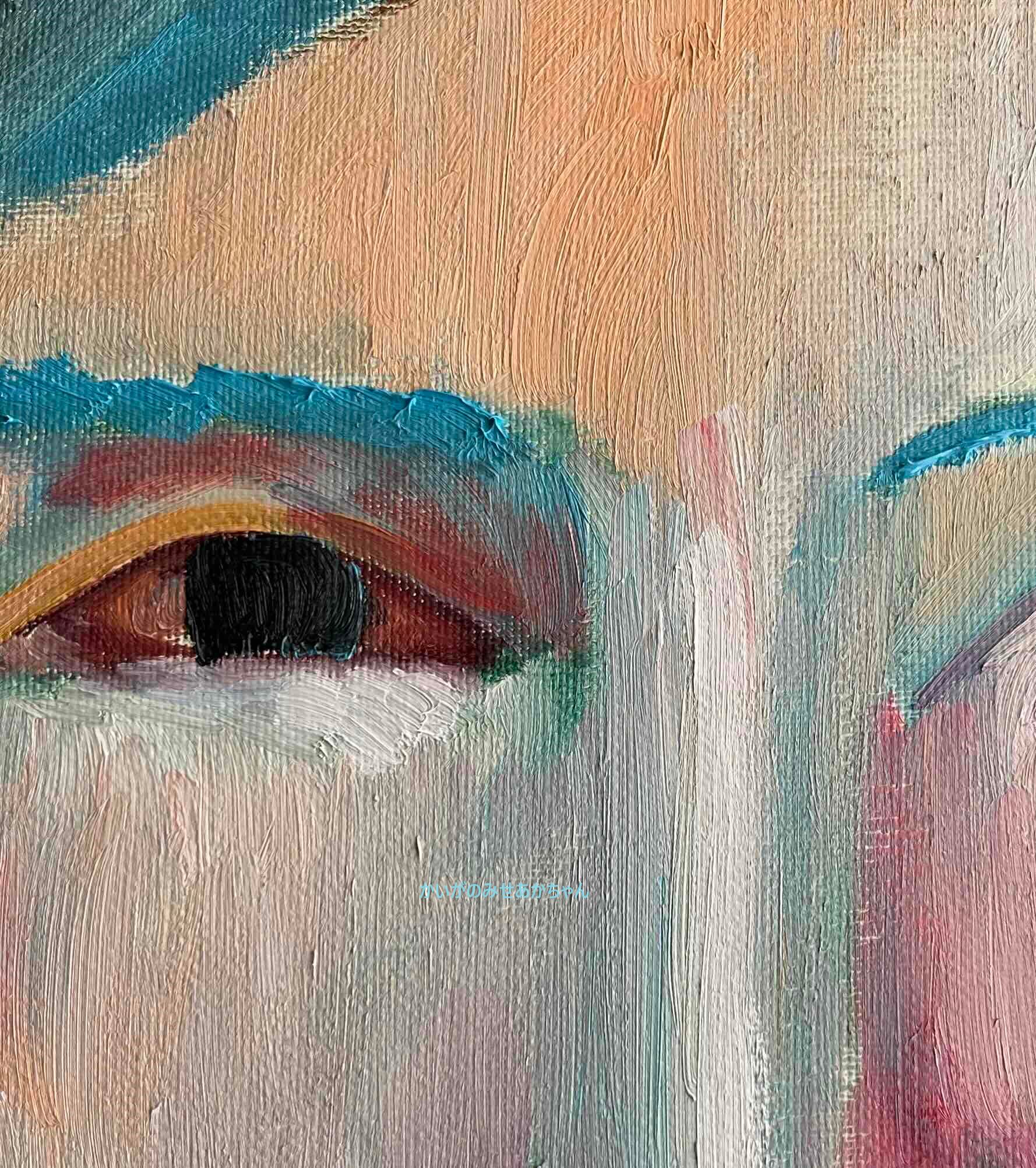 ※掲載写真の絵画表面の「かいがのみせあかちゃん」の文字は実物にはありません。