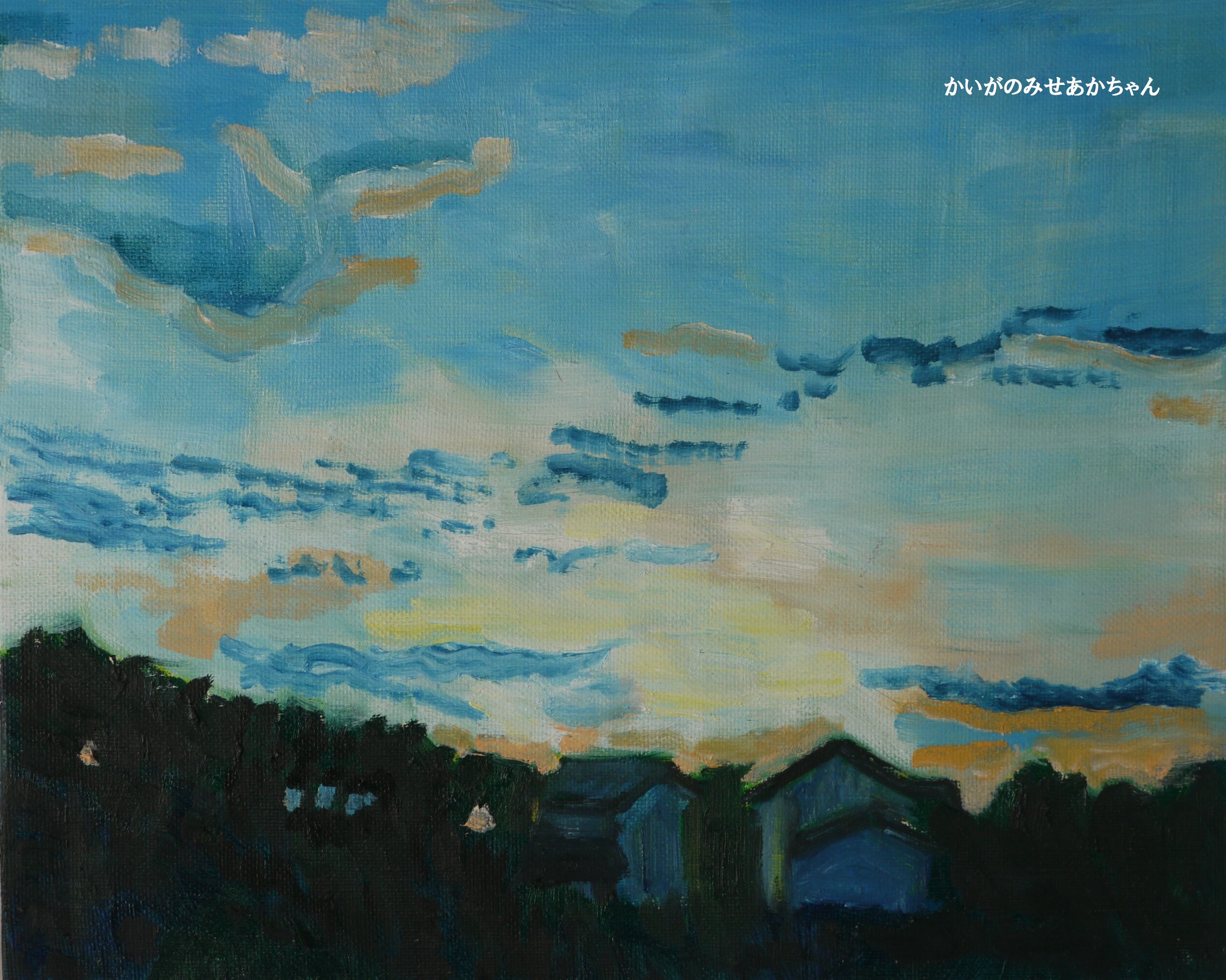 22×27㎝「朝の堤防4」F3・油彩・原画