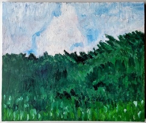 38×46㎝「繁茂する草木と巨大な雲」F8・油彩画・原画