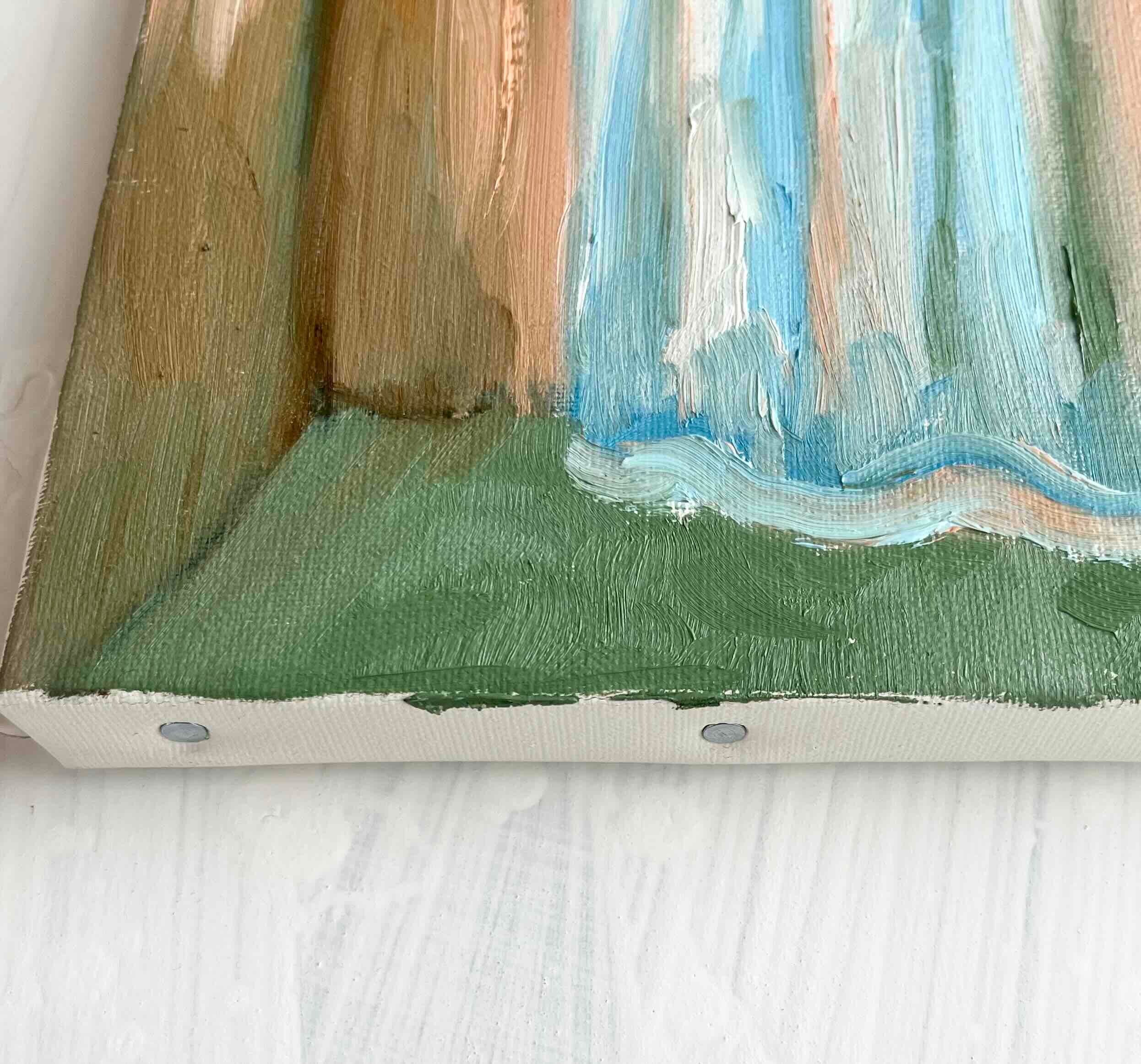 There is a string attached to the back of the painting, so you can hang it on the wall as soon as it arrives.
