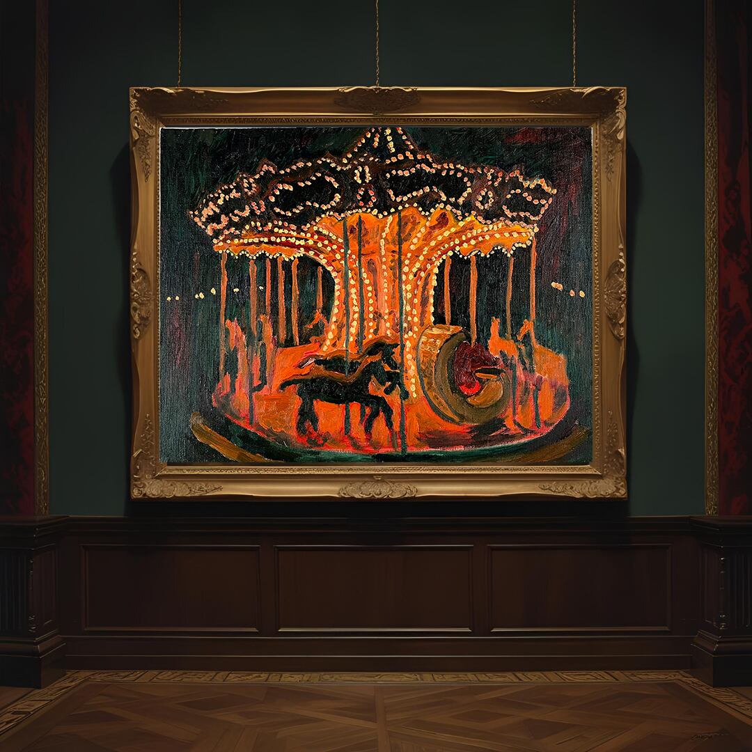 32×41㎝「夜のメリーゴーランド5」原画・油彩画・F6