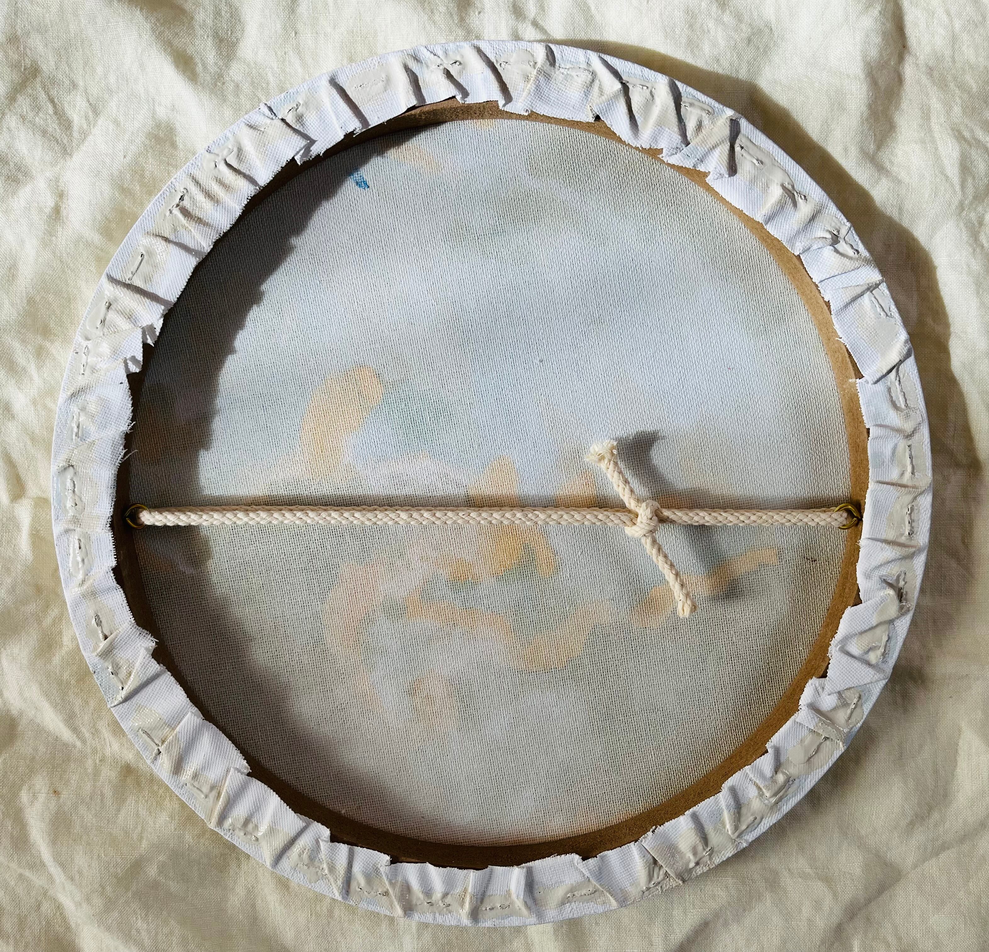 絵画の裏面には紐が取り付けてありますので、そのままでも飾れます。